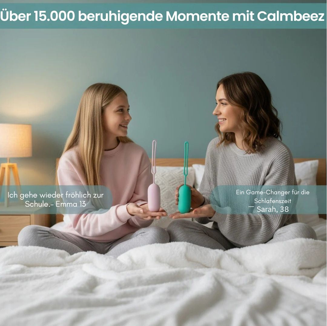 Ja. CalmBeez wurde sorgfältig unter Berücksichtigung der Sicherheit entwickelt und verwendet sehr niedrige, beruhigende Mikrostromimpulse. Es gibt keine Schocks oder Beschwerden – die meisten Benutzer beschreiben das Gefühl als sanfte, beruhigende Impulse. Es ist sowohl für Erwachsene als auch für Kinder ab 4 Jahren sicher, sofern es gemäß den Anweisungen verwendet wird.