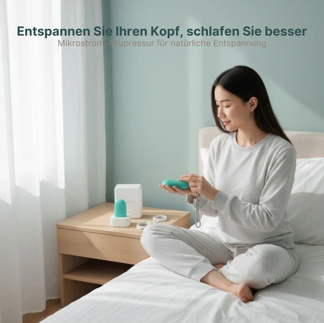 CalmBeez ist ein tragbares Gerät, das sanfte Mikrostromimpulse verwendet, um den PC8-Akupressurpunkt in Ihrer Handfläche zu stimulieren – ein Bereich, der dafür bekannt ist, Entspannung und Ausgeglichenheit zu fördern. Es wurde entwickelt, um Ihnen zu helfen, zur Ruhe zu kommen, Ihren Geist zu beruhigen und sich auf einen natürlichen, tiefen Schlaf vorzubereiten.