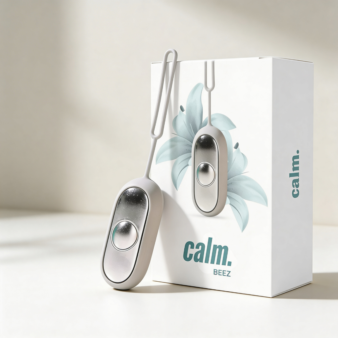 CalmBeez ist ein tragbares Gerät, das sanfte Mikrostromimpulse verwendet, um den PC8-Akupressurpunkt in Ihrer Handfläche zu stimulieren – ein Bereich, der dafür bekannt ist, Entspannung und Ausgeglichenheit zu fördern. Es wurde entwickelt, um Ihnen zu helfen, zur Ruhe zu kommen, Ihren Geist zu beruhigen und sich auf einen natürlichen, tiefen Schlaf vorzubereiten.